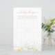 Este diseño de tarjeta de juego de bingo para bebés con personalizable completo cuenta con hermosas acuarelas sutiles y sutiles en algunos de los tonos más sorprendentes, tipografía cursiva manuscrita en tonos dorados y un fondo suave. Personalizar con la información preferida de la futura mamita, y haz que este diseño sea realmente propio.