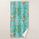 Un diseño tan bonito para aumentar su cuarto de baño. Esta toalla de baño hermosa tiene un estampado de flores magnífico en un fondo de las rayas de la aguamarina. Las flores se diseñan elegante en rosas silenciados y naranjas.