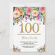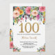 Floral 100.ª invitación de cumpleaños Purpurina de