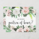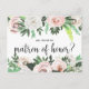 Pídele a tus amigos y familia que sean parte de tu boda con esta tarjeta de acuarela floral "Will You Be My Matron of Honor" que presenta rosas blancas y rosas y rosas rosas y claveles con hojas verdes del bosque y bonito, escritura femenina de caligrafía a mano.