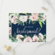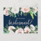 Pídele a tus amigos y familia que sean parte de tu boda con esta tarjeta acuarela floral "Will You Be My Bridesmaid" con rosas blancas y rosas rosas y rosas rosas y claveles con hojas y bonitos verdes, escritura femenina de caligrafía dibujada a mano.