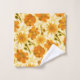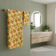 El cuarto de baño es luminoso y cuenta con una alegre toalla de inspiración retro con un atrevido patrón de flores amarillas y naranjas con acentos verde oliva. Este diseño, que recuerda a las impresiones antiguas de los años 70, añade un encanto nostálgico y acogedor a cualquier espacio. Perfecto para los amantes de la decoración boho, de la estética groovy o de los motivos florales que aparecen. Una divertida y funcional actualización para uso diario o baño de huéspedes.