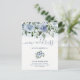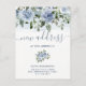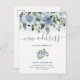 Esta tarjeta postal de nueva dirección presenta hermosas flores de acuarela en tonos suaves de azul, con hojas botánicas verdes y tipografía de letra manuscrita moderna, sobre un fondo blanco. Puedes agregar un mensaje personal en el reverso o dejarlo en blanco.