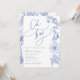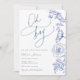 La invitación a la ducha de bebé Blue Floral honra a la madre. El diseño presenta un borde de flores dibujadas a mano azul. Personalice su información o haga clic en "Haga clic en el personalizar más adelante" para editar estilos de fuente, tamaño y colores.
