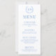 Aumenta el encanto de la recepción nupcial con estas sofisticadas y elegantes tarjetas de menú boda azul. Decorada con delicados elementos folclóricos azules, la porcelana se inspira en flores y exhibe una corona floral intemporal adornada con el monograma de la novia y el novio.