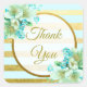 Floral azul y dorada Gracias Pegatinas de boda