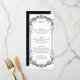Black and white simple design wedding menu. An ornamental divider top and bottom holds your menu details. Personalize with your own information. If you need help, please don't hesitate to contact me.