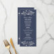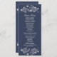 Elegante y elegante floral blanca en un menú de la recepción de bodas de fondo azul marino.