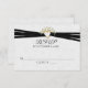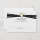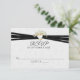 Corazón de oro con ramo de aliento de bebé y borde de cinta negra sobre elegante diseño de estilo grabado en relieve blanco para la boda RSVP. Todo el texto es editable.