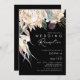 Diseñamos esta Invitación de Recepción de Boda Floral Blanca | Negra para completar tu recepción rústica oscura tropical. Con su verde acuarela bohemio a sus flores modernas boho de invierno, incluyendo protea, dalia y loto seco, el diseño seguramente resaltará tu tema minimalista y sombrío de negro y verde. Cambia el texto y agrega una foto para hacerlo tuyo. Además, asegúrate de revisar el resto de la colección para encontrar artículos coordinados que unirán toda tu boda. https://www.zazzle.com/collections/white_floral_collection-119896729923706651