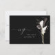 Envíe una divertida y elegante y moderna tarjeta RSVP floral blanca y negra con sus invitaciones para bodas y fiestas, incluyendo fiestas de graduación. Vea nuestra colección para una opción sin comida.