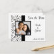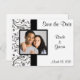 Añada su propia foto a nuestro personalizado Guardar las postales de Date con un elegante diseño floral en blanco y negro. Plantilla fácil de usar: sólo tiene que añadir la foto e introducir los nombres de la novia y de la novia, junto con la fecha del boda en el espacio que se proporciona.