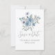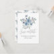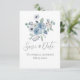 Un ramo acuarela de bonito de flores pétalas azules con escritura simple y tipografía para la perfecta invitación Save the Date boda.