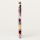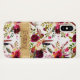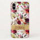 Este elegante Funda de moda boho-Mate Barely There iPhone X Funda tiene un patrón acuarela floral con plumas en colores burdeos, rojos, verdes, marfil y melocotón con una apariencia de Relieve metalizado simulado en oro en la parte inferior con tu nombre u otro texto en él.