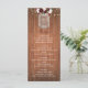 Esta rústica carta de boda de boho floral de madera rústica tiene un fondo de madera marrón oscura, luces de cuerda en la parte superior y los nombres de la novia y del novio en un tarro de albañilería decorado con un ramo de color borgoña y azul. Proporcione a sus invitados la opción de menú cambiando el texto fácilmente con las plantillas.