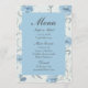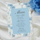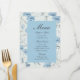Disfrute de una inolvidable recepción con este florido menú boda azul polvoriento del jardín. Delicadas flores de acuarela y románticos detalles botánicos le dan un encanto más acogedor a su mesa, mientras que suaves tonos vintage le dan un toque de elegancia intemporal. Perfecto para las celebraciones del jardín primaveral, bodas rústicos de campo y recepciones de moda vintage, el diseño de la carta capta la calidez de la temporada, ya sea bajo luces invisibles o en un florido local exterior.