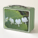 Lleve sus comidas al trabajo o a la escuela con esta metalizado caja de almuerzo que contiene una foto de pequeñas flores blancas del corazón sangrando. ¡Un bonito diseño floral! Seleccione el color de su caja de almuerzo.