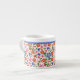 Un pequeño espresso de bonito, con un patrón floral sobre un fondo blanco, inspirado en el arte folclórico de Europa del Este. Este patrón, que forma parte de la colección "Corazón Popular" de Pintorescos y Pintarios, se adaptará a cualquiera de los tazones.