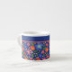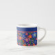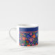 Un pequeño espresso de bonito, con un patrón floral en un fondo azul profundo, inspirado en el arte folclórico de Europa del Este. Este patrón, que forma parte de la colección "Corazón Popular" de Paco y Pintoresco, se adaptará a cualquiera de los tazones.