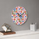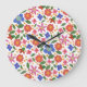 Un reloj de pared redonda de moda, con un patrón floral sobre un fondo blanco, inspirado en el arte folclórico de Europa del Este. Parte de la colección "Corazón popular" de Posh & Painterly, este patrón se ajustará a cualquier reloj y puede cambiar el color de fondo si lo desea.