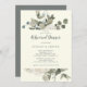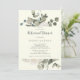 Esta invitación floral de invierno con un ensayo de marfil es perfecta para un evento elegante. El diseño es sencillo y cuenta con flores blancas con vegetación de invierno y hojas de eucalipto, con un ambiente campestre moderno.