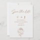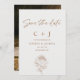 Modern Brown Line Floral Save The Date Card Modern minimalista salve nuestra tarjeta de fecha con un ilustracion australiano de línea floral nativa sobre un fondo blanco roto. Este diseño también incluye las iniciales de las parejas, la imagen moderna de caligrafía y una foto de la pareja en la parte de atrás.