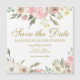 Un elegante ramo floral de peonías rosadas y flores de marfil acuarela enmarcan esta encantadora boda de primavera floral Salven la tarjeta magnética Date. Las brotes de hojas de salvia decoran el conjunto de melocotones que rodean la hermosa tipografía de oro de estos imanes cuadrados de moda.