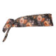 Esta hermosa banda vintage presenta un patrón floral rococó en naranja y morado.