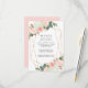 Elegantes y elegantes cartones de boda con detalles bodas rodeados por un falso marco geométrico dorado adornado con ramos de rosas de acuarela rosa rubor y tulipanes con hojas de cobre y verde exuberante. Personalice la tarjeta agregando información importante como alojamiento de hotel, sitio web de bodas, direcciones, etc.