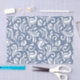 Floral decorativa con flores, hojas, puntos, rollos, torbellinos y florecientes elegantes en blanco. Personalizar con el color de su elección. Mostrado en azul pizarra.