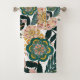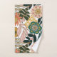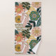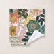 Una toalla moderna de estilo boho con flores y vegetación de estilo tropical pintadas.