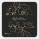 Decore sus sobres u otros artículos con su nombre y sus modernos Pegatinas Gold Lined Floral Black Floral Square. Texto opcional de agradecimiento.