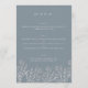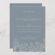 Flor silvestre moderna, florida en azul polvoriento de 5x7" Menú Boda Carta plana con caligrafía elegante. Puede encontrar una colección de artículos coincidentes y tamaño 4x9" en nuestra tienda VelvetPaperCo.