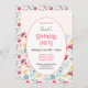 Una encantadora invitación colorida y feminista de cumpleaños con temática floral en colores rosados y alegres y con letra juguetona, apta para chicas de todas las edades. Personalice el texto fácilmente y haga una explosión. - Kate Eden Art