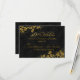 RSVP de cumpleaños fabuloso de oro. Flores elegantes en damasco negro. Por favor, tenga en cuenta: ¡Todas las imágenes planas!
