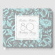 Bonito y elegante patrón vintage de flores turquesa en el fondo gris. Sofisticado y femenino libro de invitados de cumpleaños número 80 con formas cuadradas blancas y transparentes para los textos. Todo es personalizable: puede cambiar fácilmente los textos (fuente, color, tamaño y posición) y el diseño (tamaño y posición) haciendo clic en el botón personalizar. Coincidiendo Gracias caja de favores, almohada, equipaje, etiqueta de equipaje y más... No olvide toda la colección de patrones florales vintage para cumpleaños y regalos para cumpleaños con monograma.