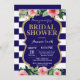Floral invitación a la ducha nupcial azul y dorada