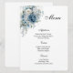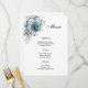 Menu card is shown with a lovely dusty blue floral print, shown on the white signature matte card paper.