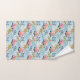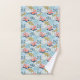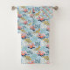 Flores de arte pop, con un estilo colorido, con acentos azules, verdes y negros sobre un fondo azul cielo, hacen un conjunto moderno y elegante de toallas.