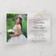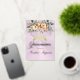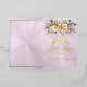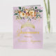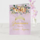 Spring Floral bouquet and gold tiara on a pastel pink background embellish the front of this folded card invite. The inside features a placeholder for a photo and the details of the event.