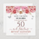 Purpurina, fondo rosa milenario, con tipografía de nombre de guión sofisticado. Feliz 50 y fabulosa plantilla de diseño de cumpleaños. Roses rosados y borde superior de la mariposa. Excelente para las celebraciones del 50. Guarda el recordatorio de celebración de fecha.