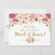 ¿Serás mi tarjeta de honor con diseño floral rosa, dorado y primaveral? Perfecto para tu romántica boda primaveral.