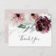 Esta tarjeta de agradecimiento de amor floral es perfecta para una boda elegante. El moderno diseño rústico de boho cuenta con románticas flores acuáticas en tonos suaves de burdeos, malva, rosa y crema blanca con hojas verdes. Personalice la parte posterior de la tarjeta con sus nombres y un mensaje de agradecimiento. Como alternativa, deje en blanco la sección de plantilla de mensajes de agradecimiento para escribir a mano una nota personalizada en cada tarjeta después de su llegada. Estas tarjetas se pueden usar para un boda, una ducha de novia o cualquier evento especial.