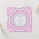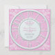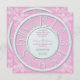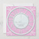 Invitación cuadrada en rosa para el Floral alrededor de la suite con ducha reloj. La cara de reloj plateado es el punto central del diseño. Las siluetas florales lo rodean, añadiendo un suave motivo de novia. Elija entre tres colores de fondo diferentes: verde azulado, rosa o morado. Con el reloj atrevido y los colores vivos, ¡nadie confundirá el tema de la ducha!