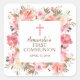 Hermosa floral rosa Primer pegatina o sello para sobres de la Santa Comunión