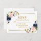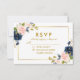 Floral rosa Rubor Blue Wedding RSVP Gold