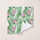 Hojas tropicales verdes y flores de anturio rosado decoran esta cortina de ducha, un bonito acento para la decoración de tu baño. COINCIDIENDO elementos de nuestra colección.