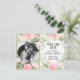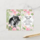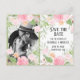Los rosas rosa y rosa claro de Rubor crean una romántica frontera. La foto de tu pareja está a la izquierda y la solicitud Save the Date es la derecha. Tu foto está enmarcada por verde claro. la parte posterior de la postal tiene el mismo borde floral rosado, pero toda la parte posterior es verde. Fácil de personalizar con tu propia información Guardar la fecha.