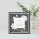 Esta elegante Invitación a la Boda está diseñada con rosas blancas en un fondo gris de carbón vegetal con acentos verdes. En la parte delantera se incluyen los nombres de las novias y de los primeros en el entorno enmarcado. El reverso incluye el texto de la invitación a la boda: Los nombres completos de la novia y del novio, la fecha, hora y ubicación del Boda, en un fondo blanco, en un entorno enmarcado. Para personalizar, simplemente inserte sus detalles en nuestra plantilla sencilla, reemplazando el texto de ejemplo.