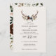 Invitación a una boda rústica con flores y estag antlers. Con hermosos detalles de acuarela. Esta moderna invitación a la boda le permitirá fijar el estilo de su gran día.